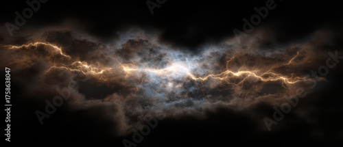 © NightTampa, Obraz premium Glowing Lightning Bolt with Thunder Effect in Dark Sky Background