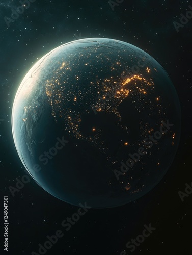 Fototapeta premium Glowing lights of cities on the darkened planet surface