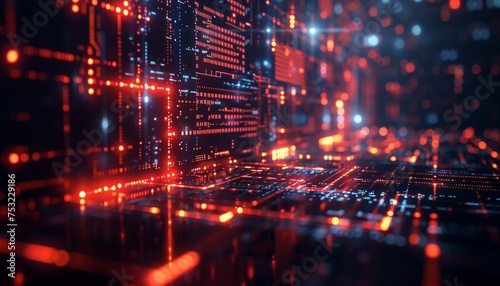 © MIKHAIL, Obraz premium Glowing Lines and Squares Abstract. Generative AI