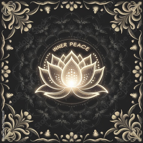 Obraz premium Glowing Lotus with "Inner Peace" Text and Ornamental Border