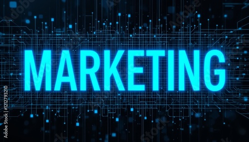 © Crazy Dark Queen, Fototapeta premium Glowing "Marketing" text in a futuristic digital design