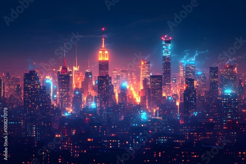 Obraz premium Glowing Metropolis Dazzling Nighttime Cityscape with Illuminated Skyscrapers