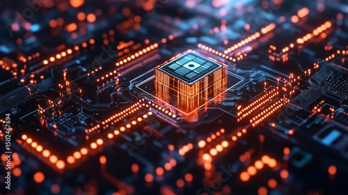 © Eqan, Obraz premium Glowing Microchip Marvel High Tech Innovation Advanced Computing Technology Artificial Intelligence Motherboard