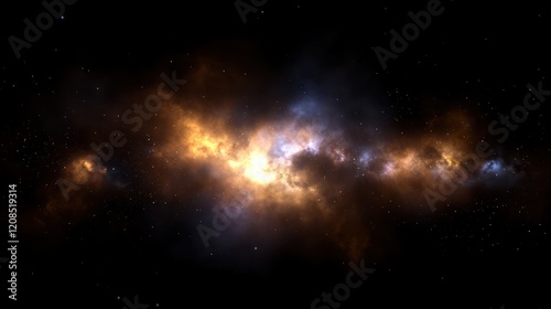 © kamila, Naklejka premium Glowing milky way galaxy with vibrant cosmic clouds and stars