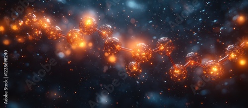 Fototapeta premium Glowing molecular chain in dark space.