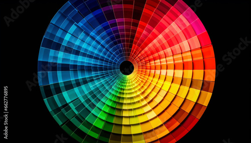 © Stockgiu, Fototapeta premium Glowing multi colored spiral backdrop with abstract geometric shapes generated by AI