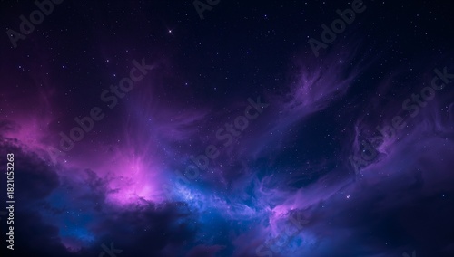 Fototapeta premium Glowing nebula clouds spreading in deep space, showing filaments, dark...