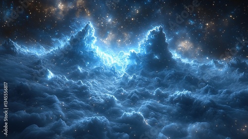 Obraz premium Glowing nebula cloudscape, cosmic dust, starry backdrop