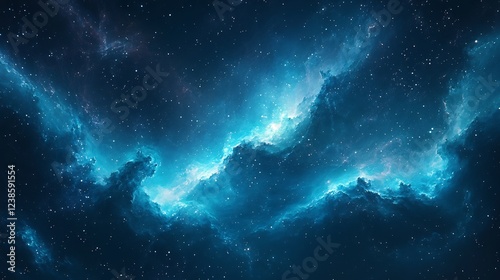 Fototapeta premium Glowing nebula cosmic dust swirls brilliantly dark blue space. AI Generated