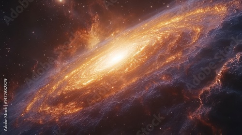 Obraz premium Glowing nebula with spiraling, colorful cosmic clouds and bright center