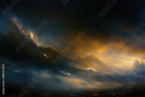 © MrHamster, Naklejka premium Glowing Nebula with Stars in Space