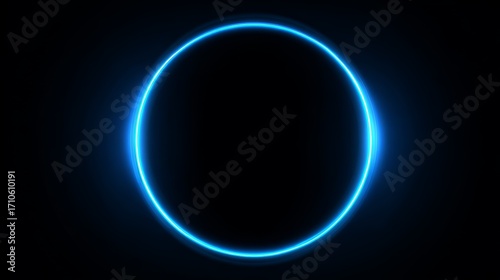 Fototapeta premium Glowing neon blue circle on black background