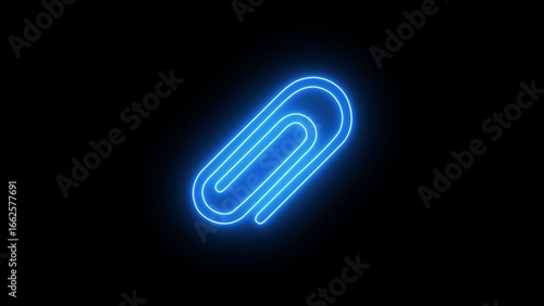 © MdSumon, Obraz premium Glowing neon blue color paperclip icon on black background.