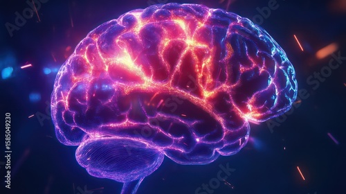 Fototapeta premium Glowing Neon Brain Abstract Art with Sparks