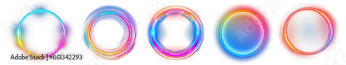 Fototapeta premium Glowing neon circle frame png cut out element set