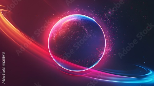 © panu101, Obraz premium Glowing Neon Circle Rays Forming Planetary Wave Design for Backgrounds
