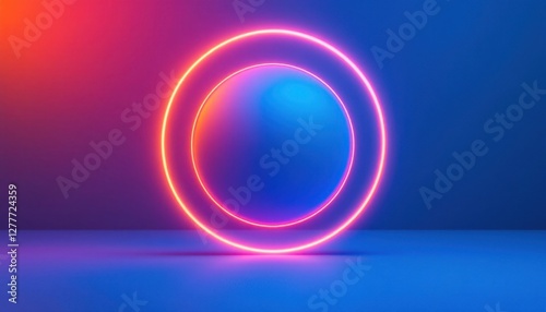 Obraz premium Glowing neon circles on vibrant blue and orange background