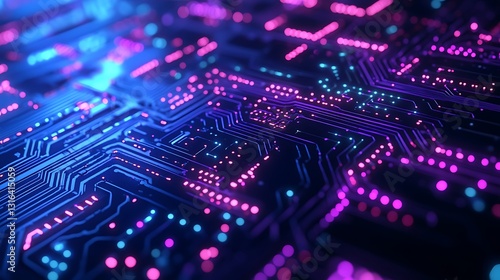 © Ardhana, Obraz premium Glowing neon circuit board texture.