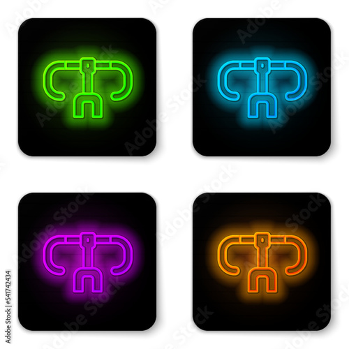 Obraz premium Glowing neon line Bicycle handlebar icon isolated on white background. Black square button. Vector