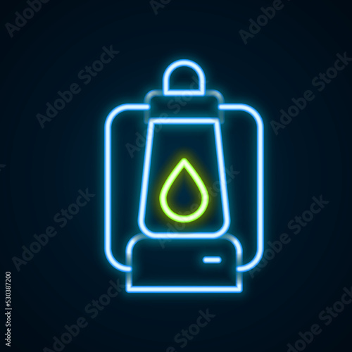 © Iryna, Obraz premium Glowing neon line Camping lantern icon isolated on black background. Colorful outline concept. Vector