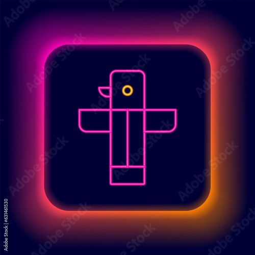 Fototapeta premium Glowing neon line Canadian totem pole icon isolated on black background....