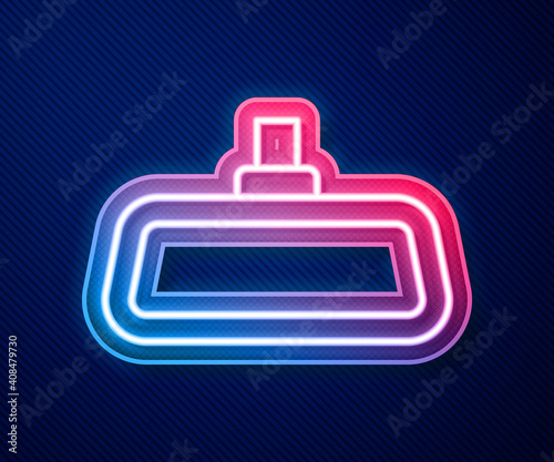 Fototapeta premium Glowing neon line Car mirror icon isolated on blue background. Vector.