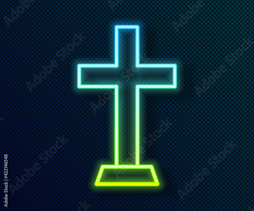 Fototapeta premium Glowing neon line Christian cross icon isolated on black background. Church...