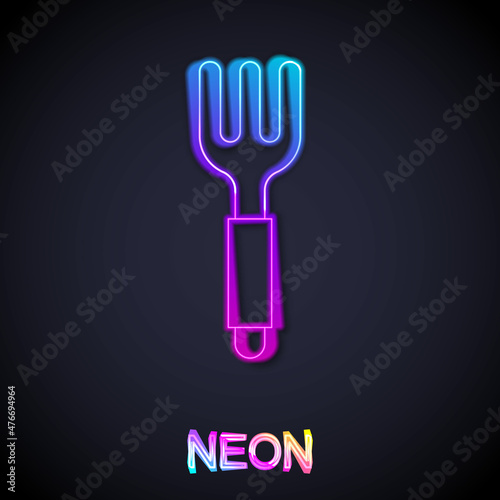Fototapeta premium Glowing neon line Fork icon isolated on black background. Cutlery symbol. Vector