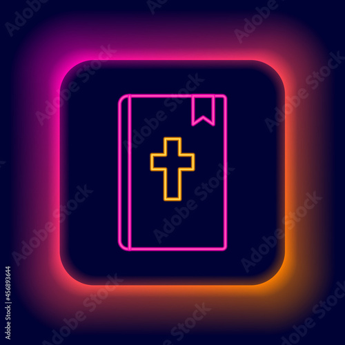 Fototapeta premium Glowing neon line Holy bible book icon isolated on black background. Colorful...