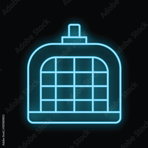Obraz premium Glowing neon line pet carry case icon isolated on black background....