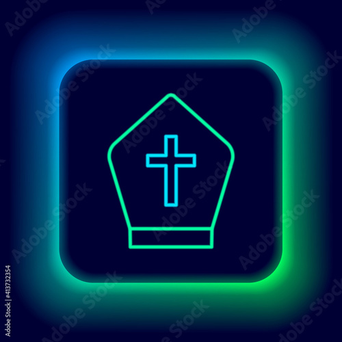 Fototapeta premium Glowing neon line Pope hat icon isolated on black background. Christian hat...