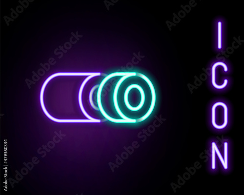 Fototapeta premium Glowing neon line Sushi icon isolated on black background. Traditional...