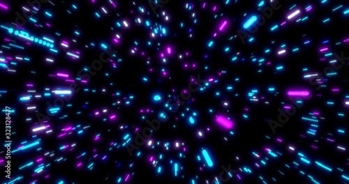 © flying creature, Obraz premium Glowing neon lines tunnel. Blue red pink and violet colorful lighting. Seamless 3D rendering background for network, big data, data center, server, internet, speed. 3D render. 3D illustration