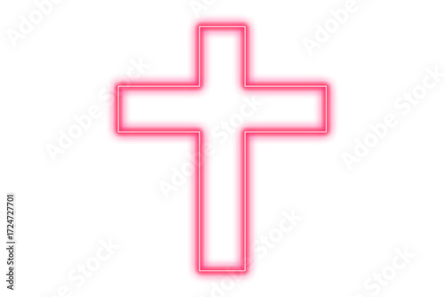 © Lepe PNG, Fototapeta premium Glowing neon pink cross symbol lighting up the dark abstract religious icon