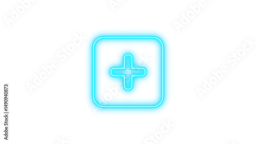Fototapeta premium Glowing Neon Plus Sign Icon, Neon square plus glow with transparent background