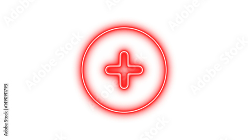Obraz premium Glowing neon plus sign inside a circular frame on a black background
