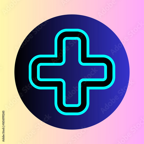 Fototapeta premium Glowing neon plus sign inside a dark circle