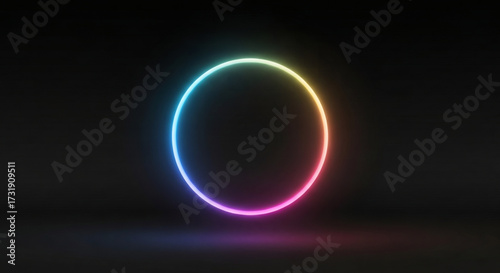 Obraz premium Glowing Neon Ring on Dark Background A Vibrant Light Circle for Design Projects