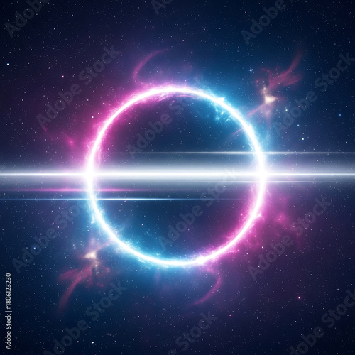 © ika, Obraz premium Glowing Neon Ring with Lens Flare in Space, cyber monday, cyber monday shoping,