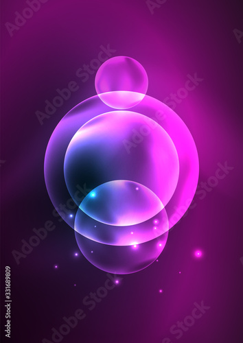 Obraz premium Glowing neon shiny transparent bubbles, glass circles or bio cell concept....