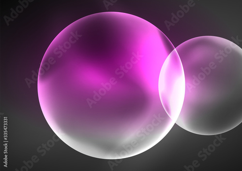 © antishock, Obraz premium Glowing neon shiny transparent bubbles, glass circles or bio cell concept. Techno futuristic vector abstract background For Wallpaper, Banner, Background, Card, Book Illustration, landing page