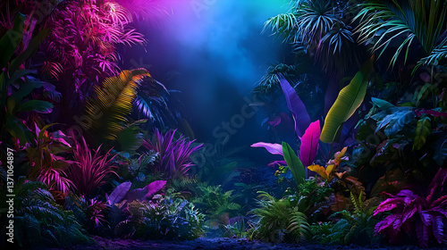 © predator, Fototapeta premium Glowing Neon Tropical Forest