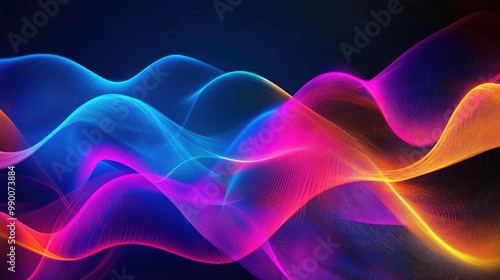 Obraz premium Glowing neon waves in vibrant colors undulating across a sleek, dark...