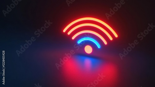 Fototapeta premium Glowing Neon Wifi Symbol, Dark Background, Technology Concept