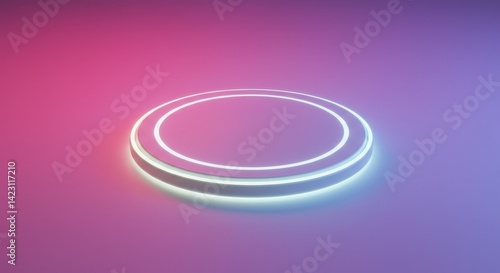 © Burak, Obraz premium Glowing Neon Wireless Charging Pad on Lavender Gradient Background