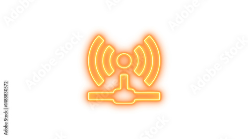 © مُحسَب, Obraz premium Glowing neon wireless network icon with antenna and signal waves