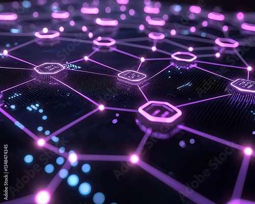 © Saripudin, Obraz premium Glowing Network Nodes Abstract Digital Technology Background