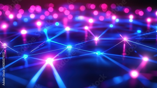 Fototapeta premium Glowing network with neon lights and digital connections.
