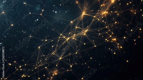 Fototapeta premium Glowing Nodes and Network Connections on Dark Background Abstract Design
