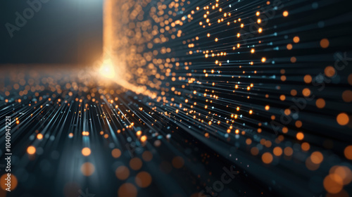 © AlexPhototest, Obraz premium Glowing nodes and sharp lines create mesmerizing visual effect, evoking sense of depth and movement in digital landscape. interplay of light and shadow enhances dynamic atmosphere